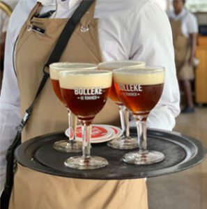 Patrons at Den Anker’s African Queen Bar enjoy a variety of beers imported from small Belgian breweries, each offering a selection of flavours and styles. On tap diners can enjoy De Koninck, Vedett Extra White, Liefmans Fruitesse, and La Chouffe. Ale Anker Brew, created by Bouckaert, is also available on tap for patrons alongside its Blond Ale version, Anker Blonde.