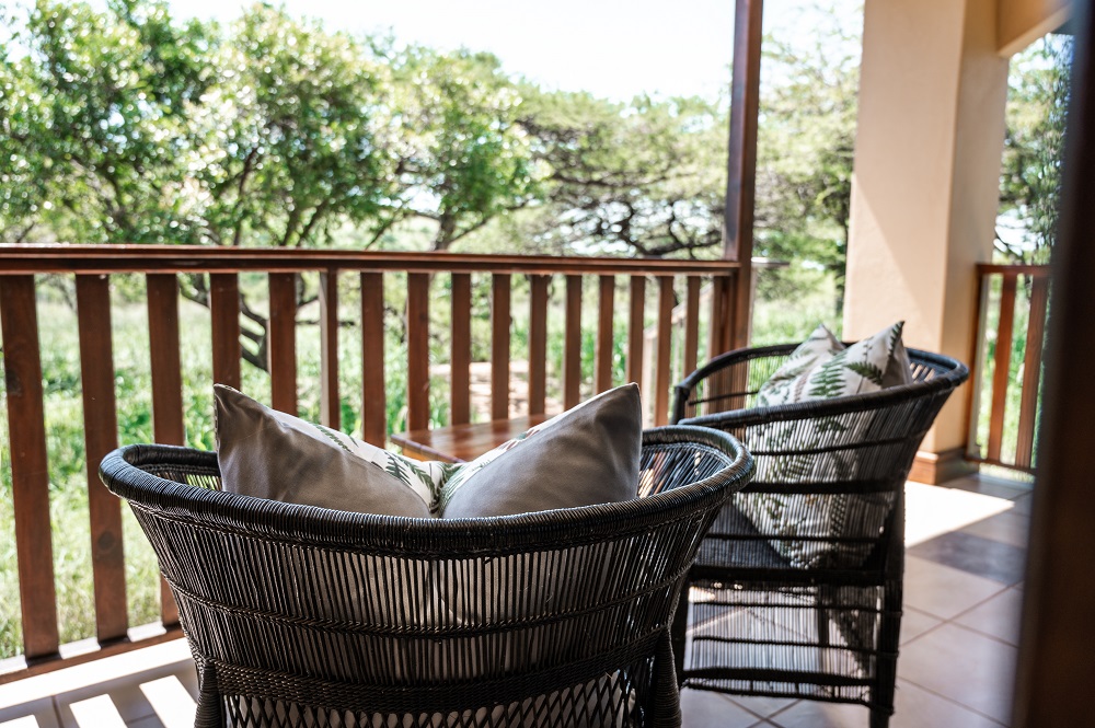The décor incorporates natural elements, creating a warm and inviting atmosphere that reflects the African surroundings. Each cozy chalet guarantees a comfortable and unforgettable stay.