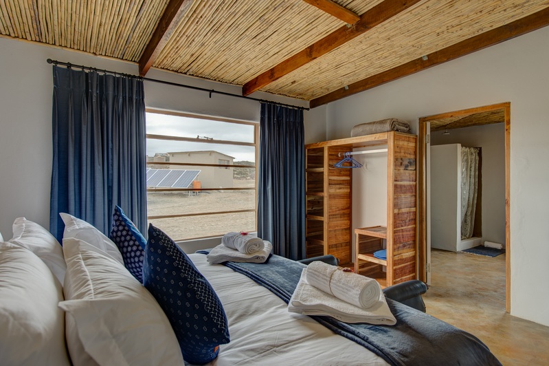 Accommodation is cosy and warm with thick blankets, hot water bottles, and fire places for use in the snowy Sutherland winters. Large windows look out over the dam where the springbok come to drink.