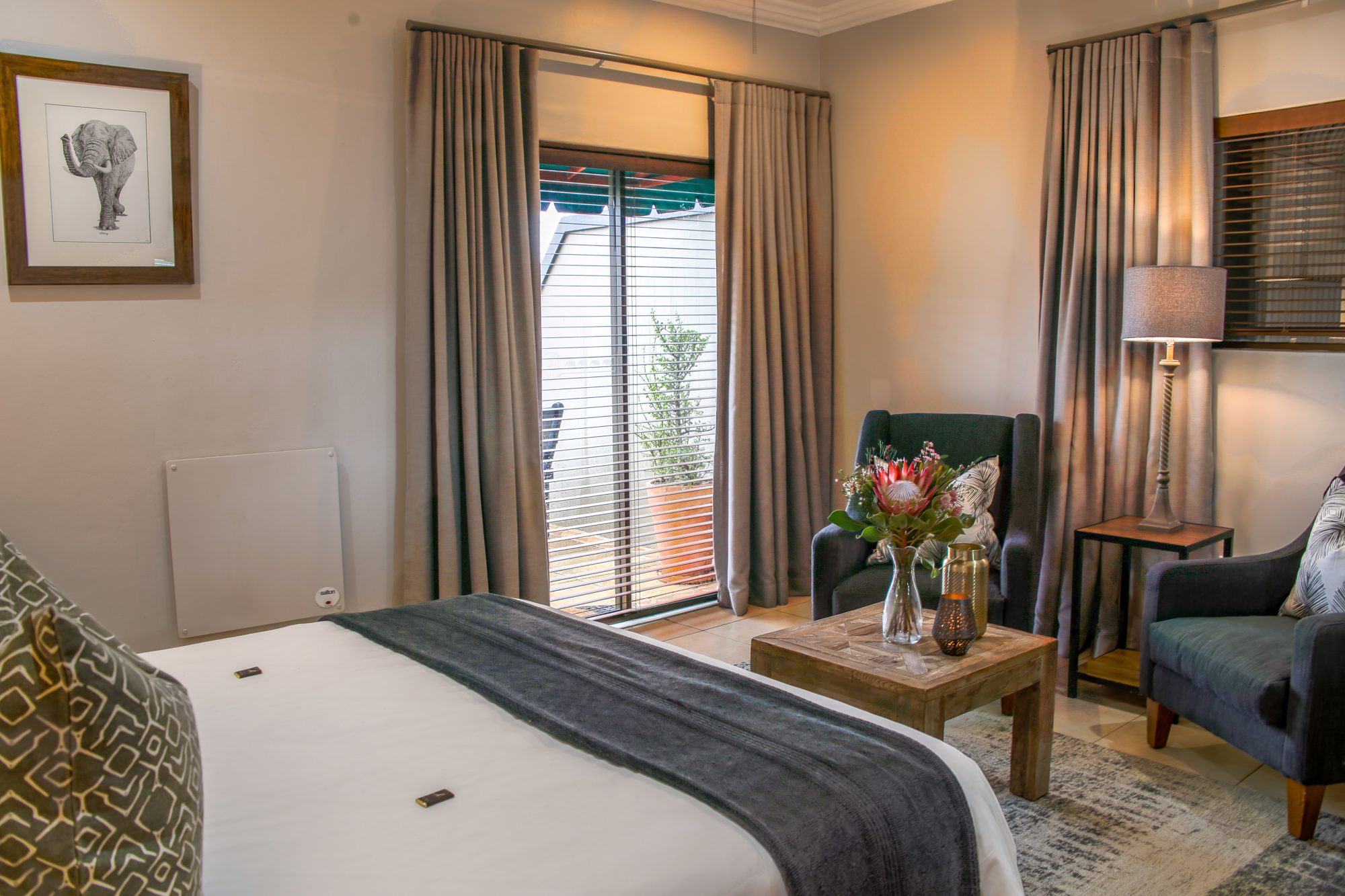 At the on-site Indlovu Cafe and Curio Shop, savour glasses of wine or sip refreshing beers while enjoying a buffet-style breakfast or a lunch of either burgers, pizza, salads, and freshly grilled meats.