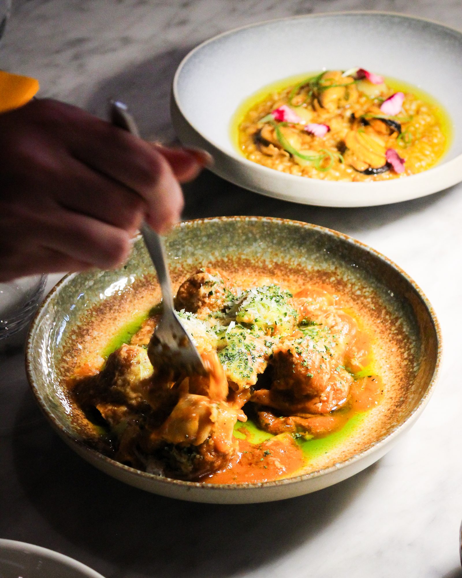 At Scala, dining groups are recommended to choose between two to three dishes per couple, starting with a Piccoili Platti like scallop and yellowtail carpaccio, or a baked Puglia ricotta. The main pasta offerings include Chef Luciano Monosilio’s signature Carbonara, the Not Your Mamma’s Lasagna, or delicious fettuccine marinara with prawns, mussels, and crudo relish.