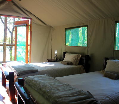 Accommodation at Mtomeni Safari Camp comprises of 12 safari tents built on wooden platforms. While still offering an authentic African safari feel, the tents offer two ¾ beds in each one, en-suite bathrooms with flush toilet, bucket shower and basin as well as high quality linen and bedding.