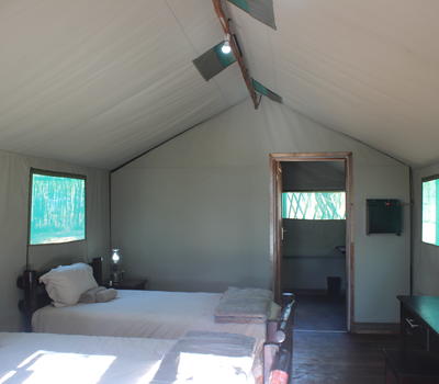 Given that the camp is unfenced from the reserve, there is frequent animal activity in the camp at night. As a result, guests are escorted to and from their tents when coming to the communal dining and camp-fire area.
