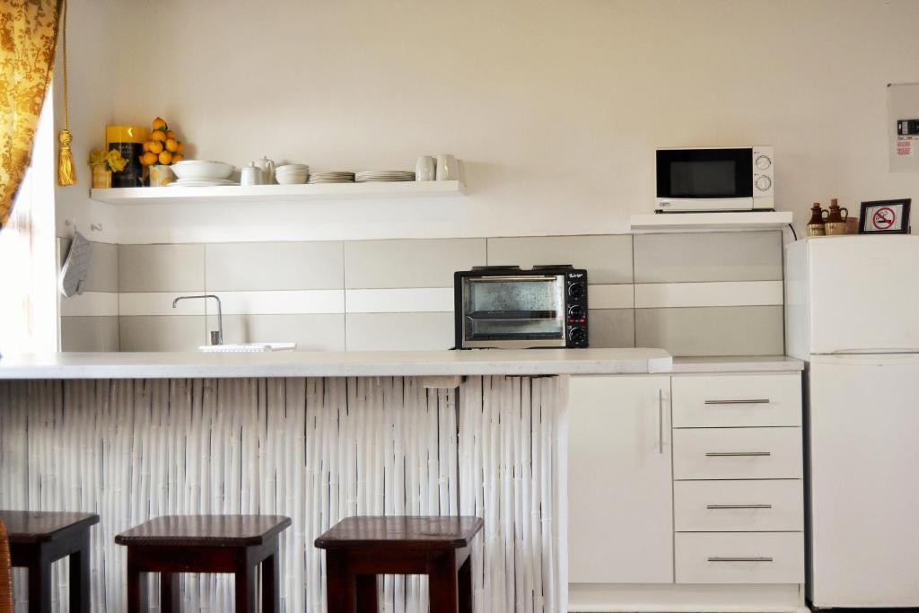 All units have a well-equipped kitchenette with an oven and a microwave, and additional equipment provides for load shedding.