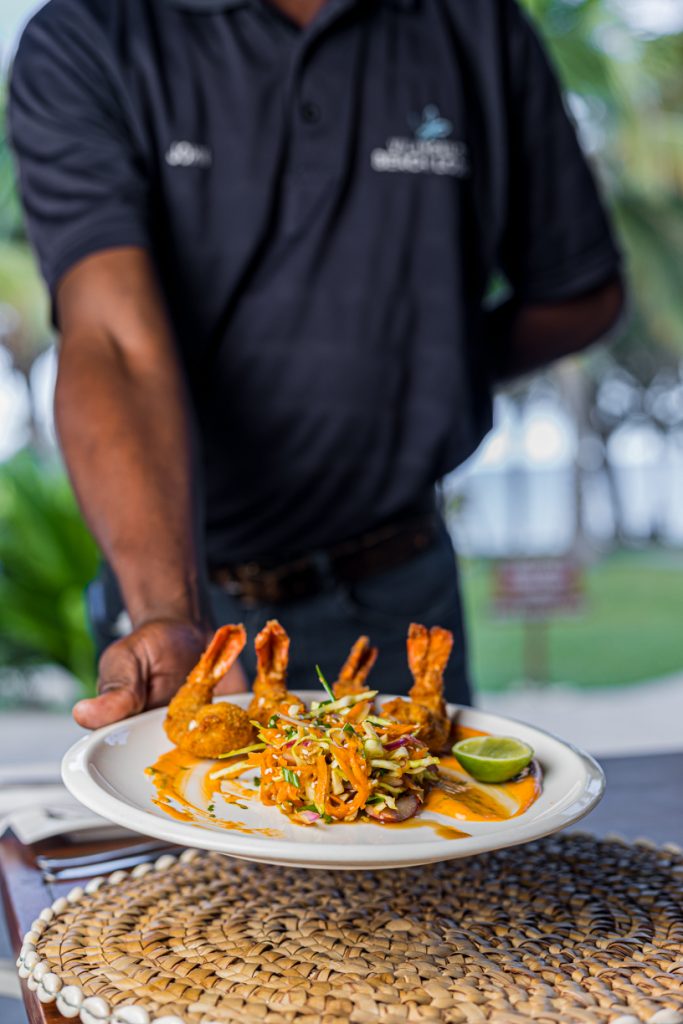 Throughout every stay, guests at Vilanculos Beach Lodge have never found themselves wondering how to fill their days. The on-site restaurant’s menu showcases a fine selection of Mozambican and Portuguese cuisine combined with International Flavours, such as crumbed prawns with a spicy Asian slaw and Gochujang Aioli.