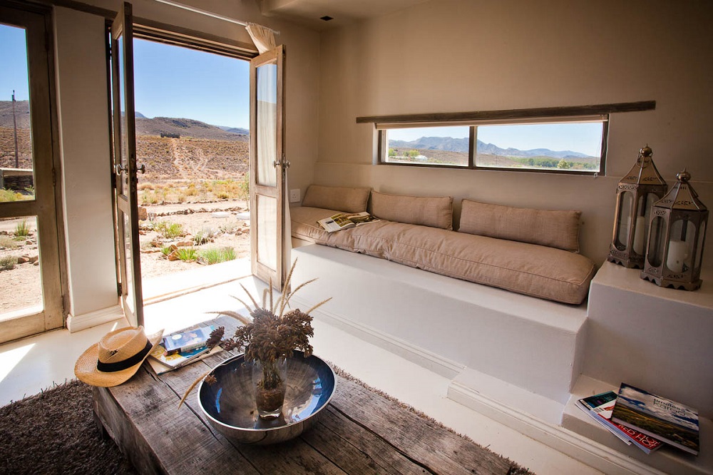 Sleeping up to four guests in two double en-suite bedrooms, Cook’s Cottage marries authentic style with farmhouse simplicity. This cottage is aptly named after the fine flour used in pasta-making, Farina, which overlooks young olive trees, a Springbok feeding patch, and the picturesque Karoo hills.