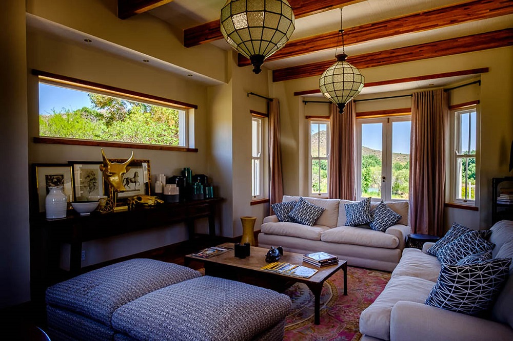 Ideal for two adults, the Birdwatcher River Cottage is nestled alongside the Artist Cottage, offering an intimate connection to nature. From its braai area to its colorful furniture and natural, earthy décor, this cottage exudes rustic charm. Relax on the rustic veranda, take in the sights and sounds of the countryside, and engage in conversations about olive crops, rainfall, and Karoo lamb. For the adventurous, there’s even an outdoor shower.